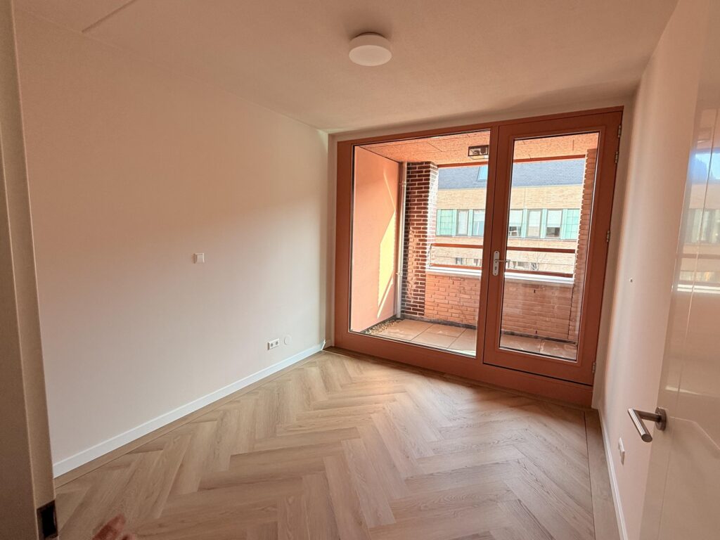 De hoofdslaapkamer bevindt zich aan de rustige achterzijde van het appartement. De tweede slaapkamer ligt aan de voorzijde en is ook uitstekend geschikt als werk- of logeerkamer.