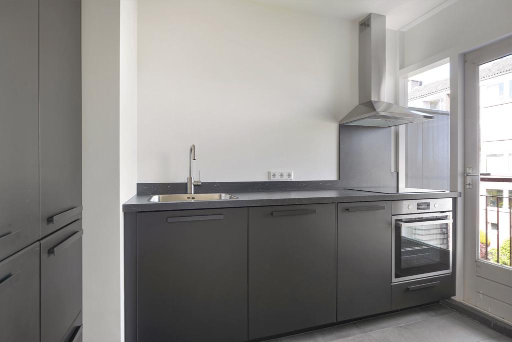 De keuken bevindt zich aan de achterzijde en geeft toegang tot het tweede balkon. De keuken is modern uitgevoerd en compleet ingericht met diverse inbouwapparatuur.