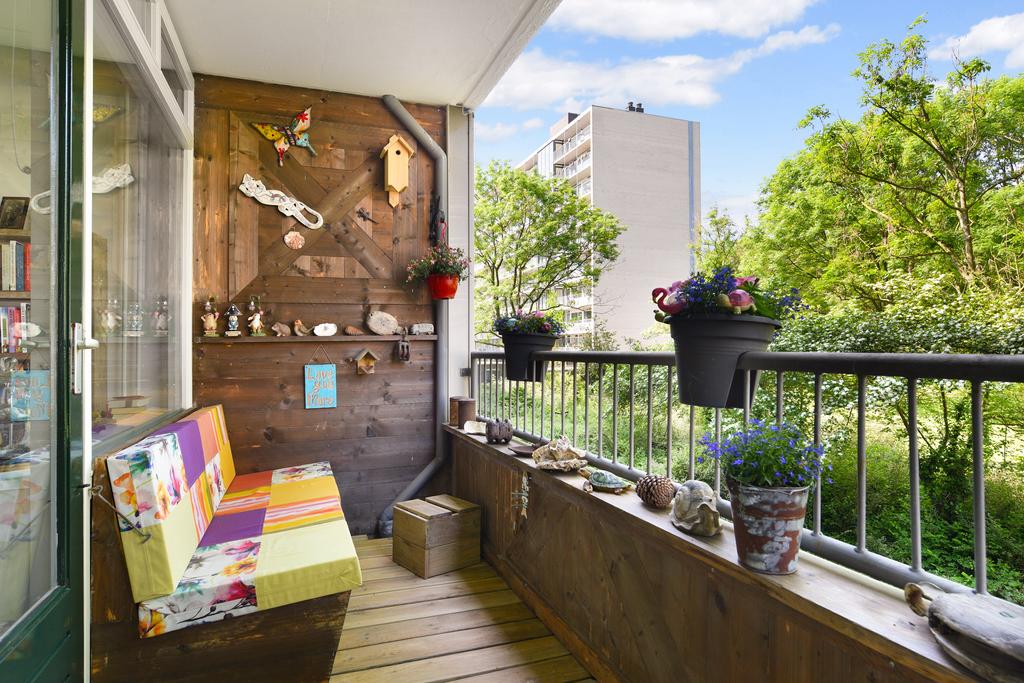 De keuken is modern en praktisch ingericht en sluit goed aan op het geheel. Beide badkamers zijn netjes afgewerkt en zorgen voor extra gemak in het dagelijks gebruik. Het balkon ligt op het zonnige westen, waardoor je hier volop kunt genieten van de middag- en avondzon, met vrij uitzicht over het park als extra plus.