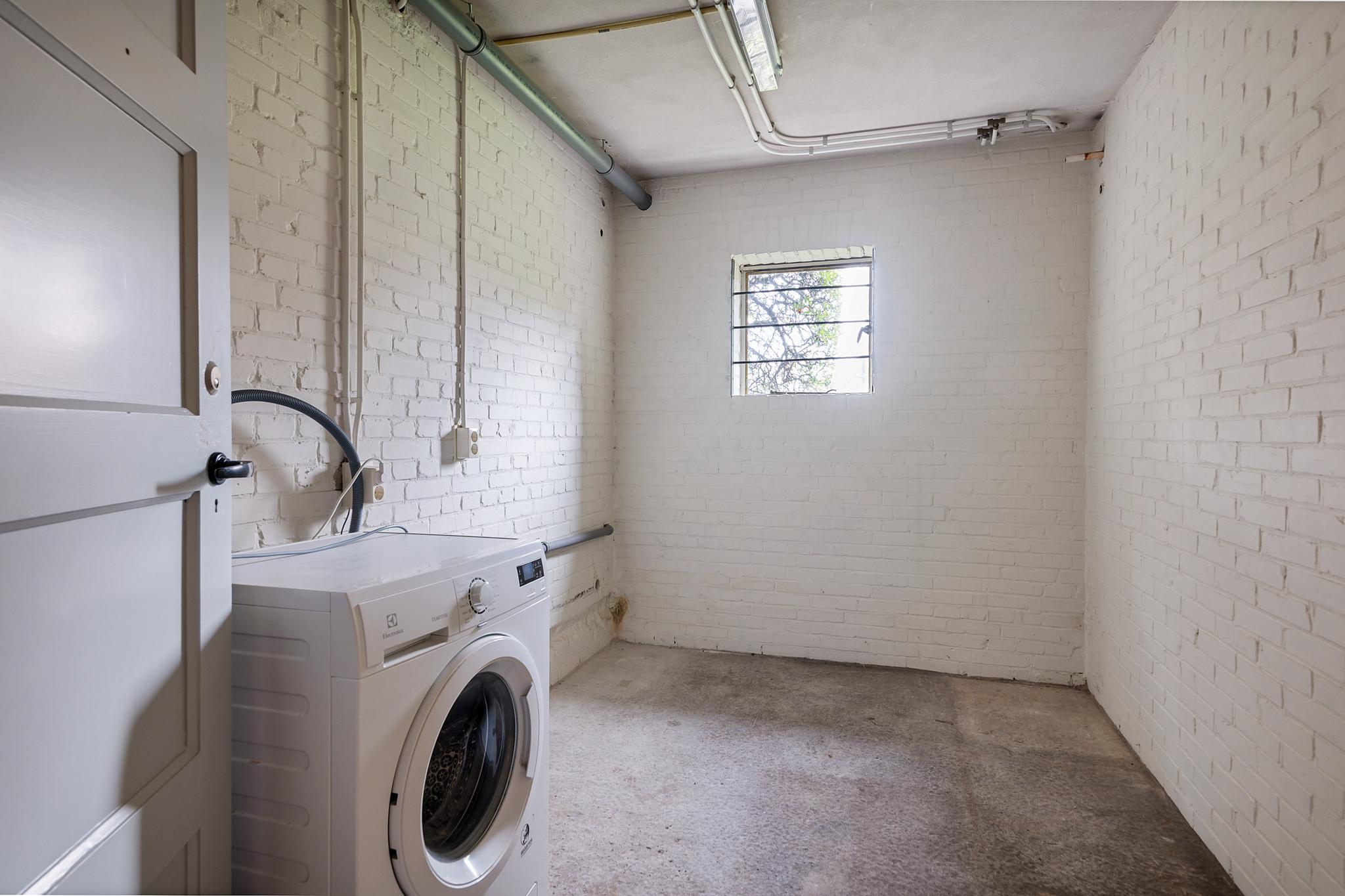 Begane grond: Gemeenschappelijke entree, hal, inpandige berging met aansluiting voor wasmachine (3.30×2.18m) en een grote garage (5.93×3.83m).