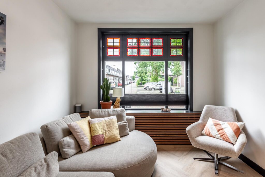 Zeer lichte woning met zonnige achtertuin en vrij zicht aan de voorzijde.
