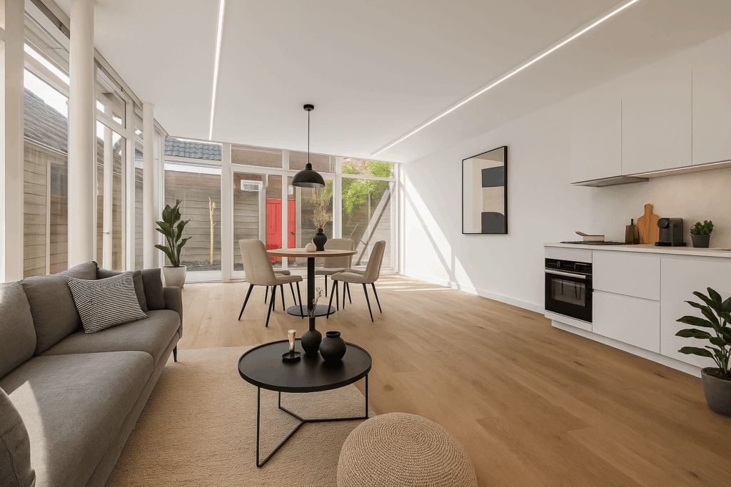Om te toveren tot heerlijk begane grond appartement met tuin op het zuiden.